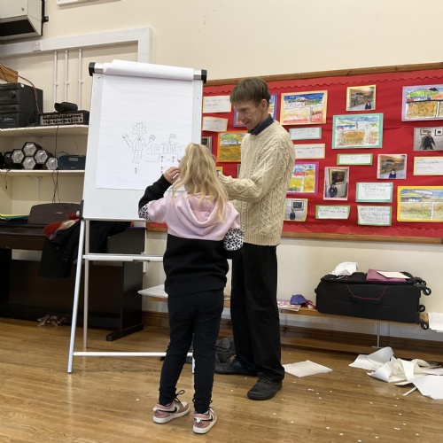 Nicholas Allan is one of our favourite authors and we were really excited when he came into school to visit us. He read his story The King's Pants to us, showed us how he illustrates his books and even showed us some magic tricks!