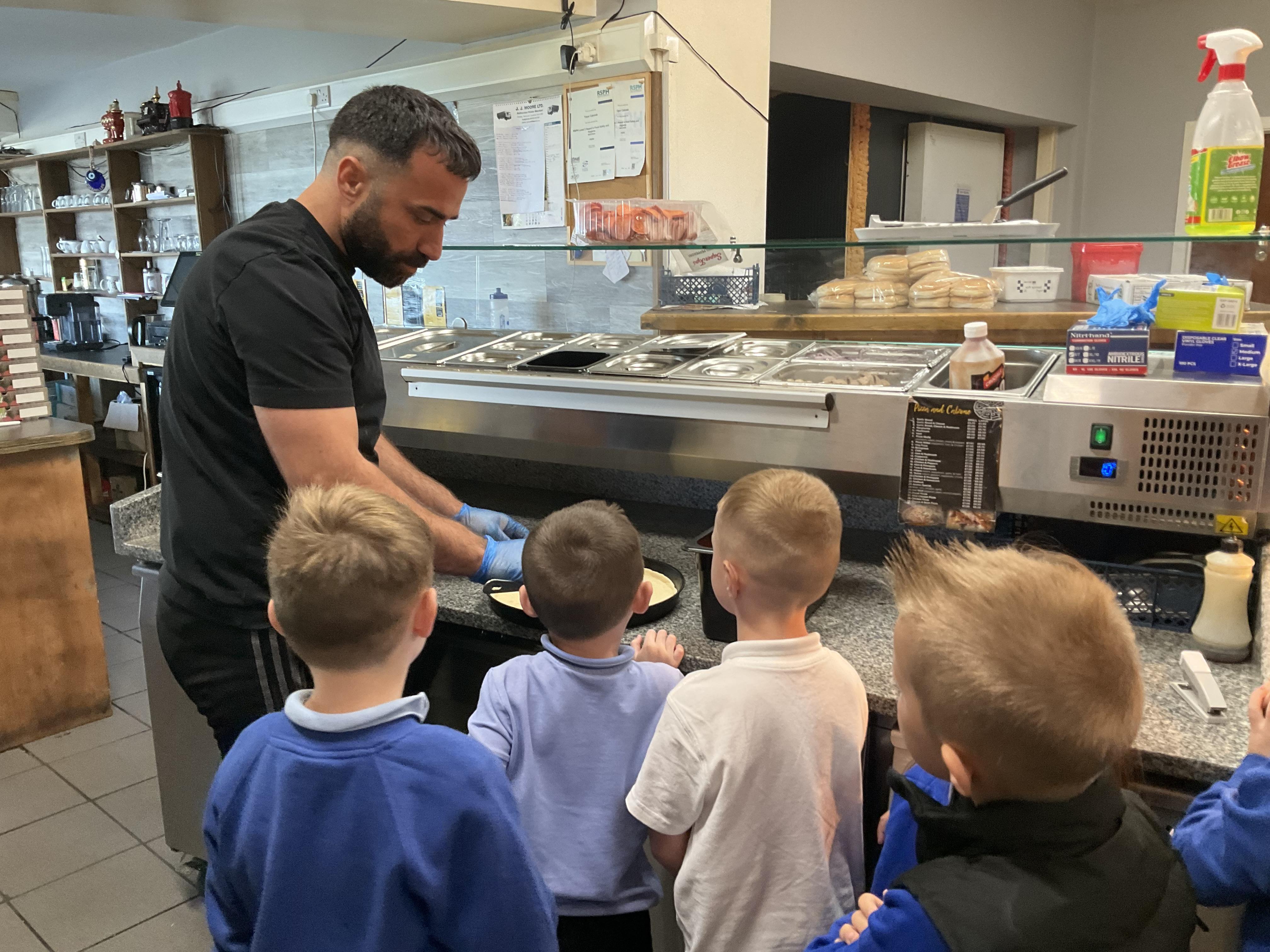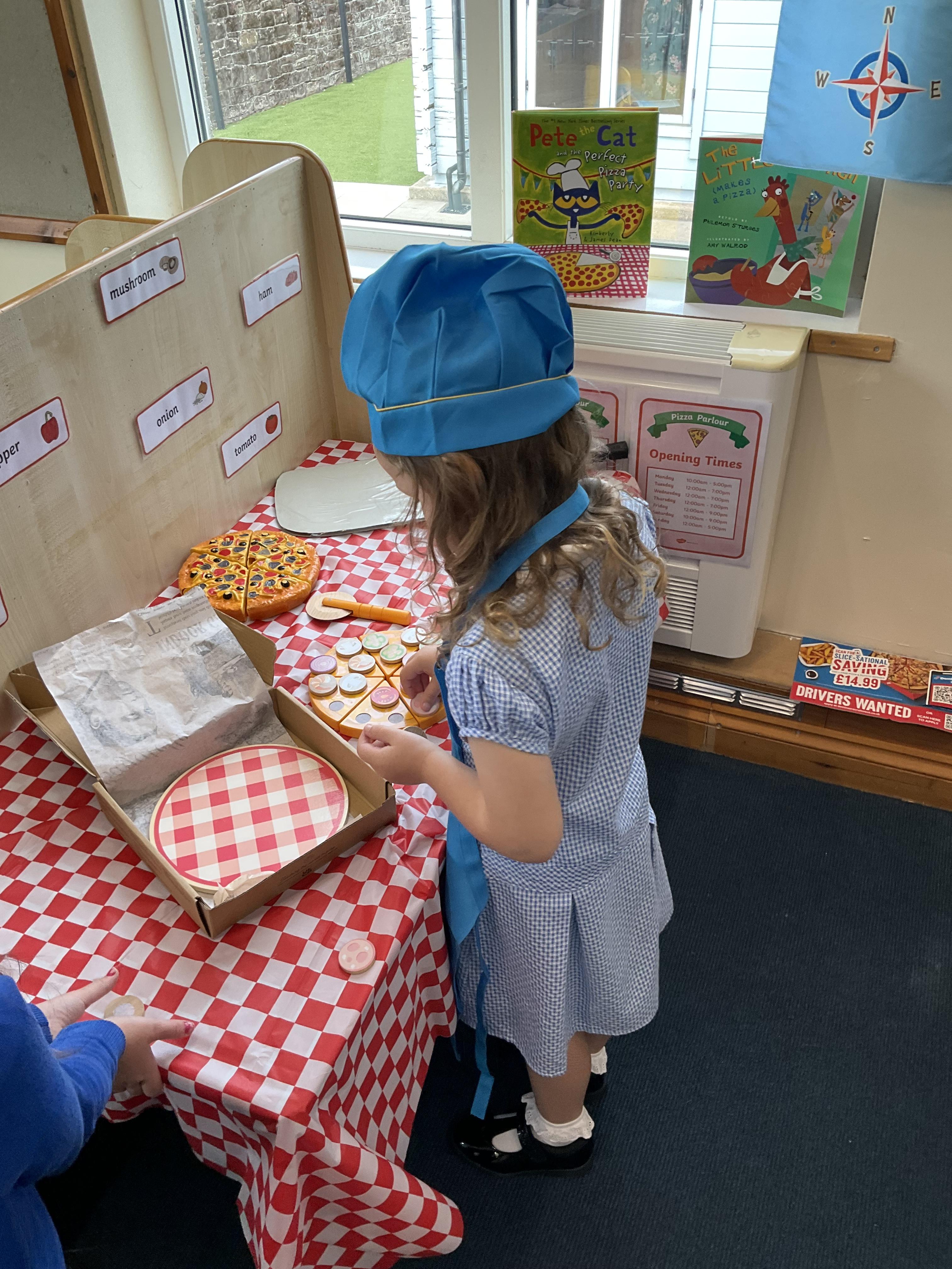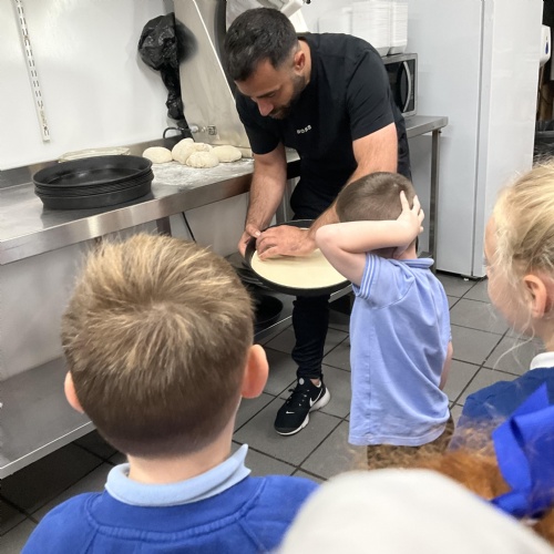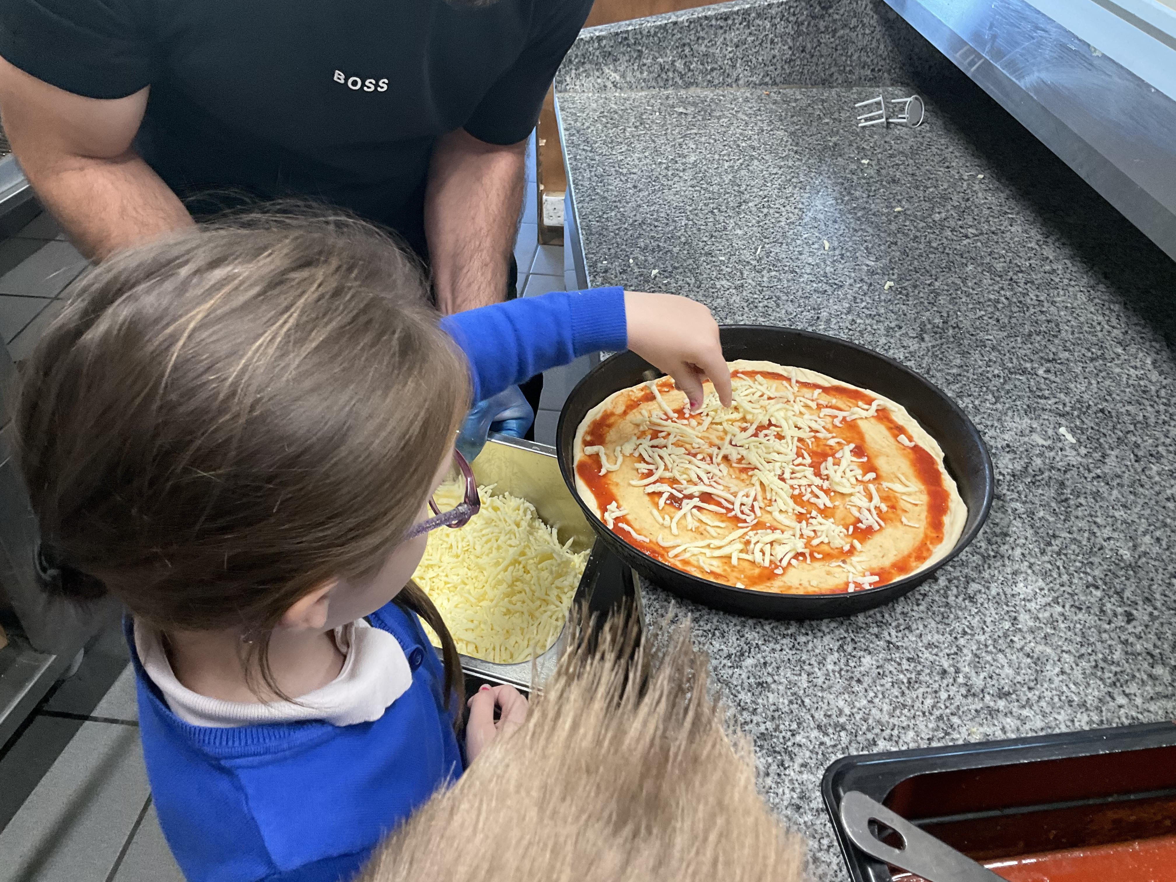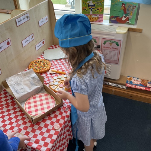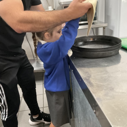 We all enjoyed our walk to our local cafe Aroma where Gem showed us how to make our own pizzas. At school we have our own role play pizza shop where we take orders, create our own pizzas and write out bills and receipts.