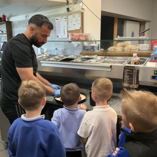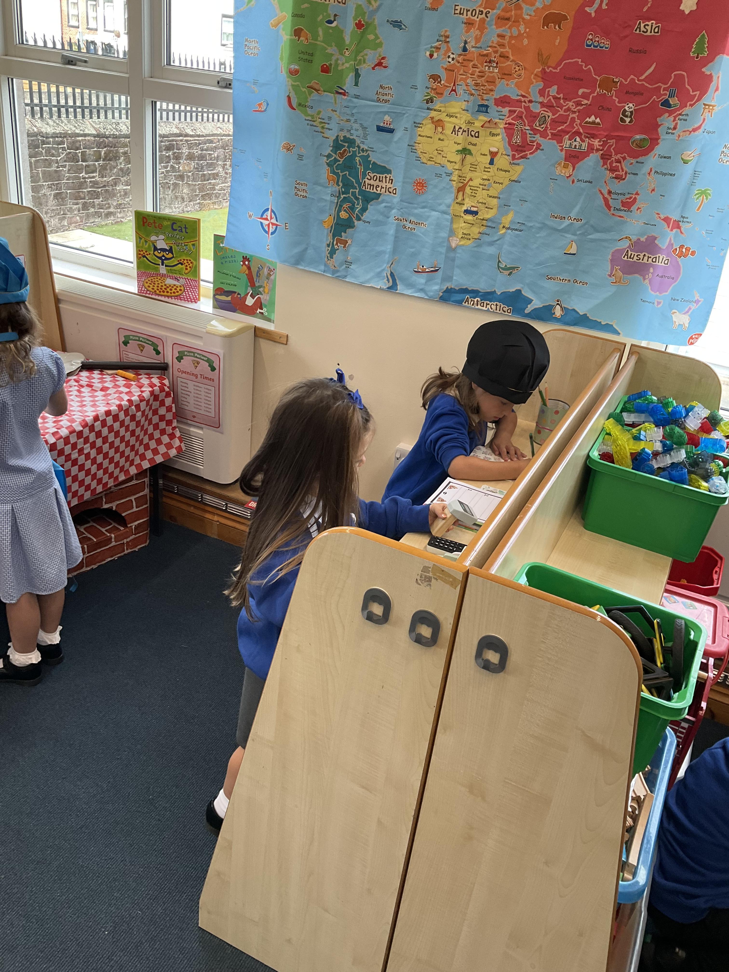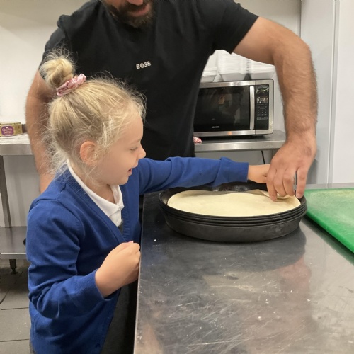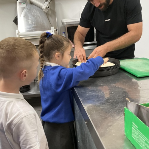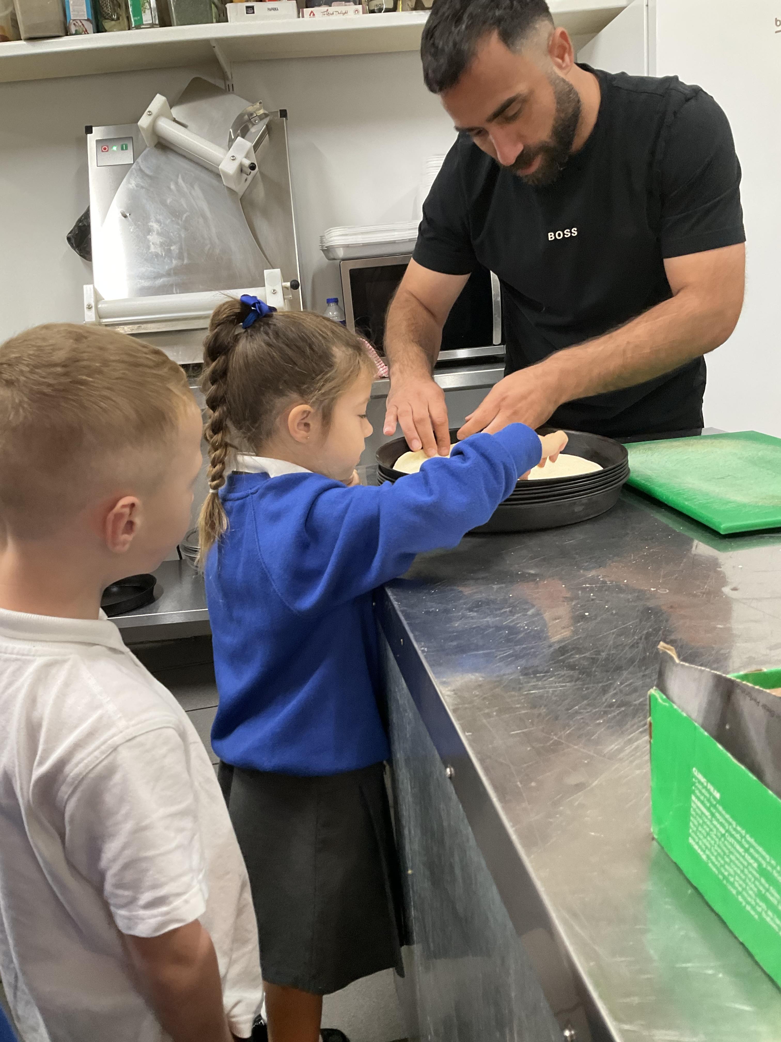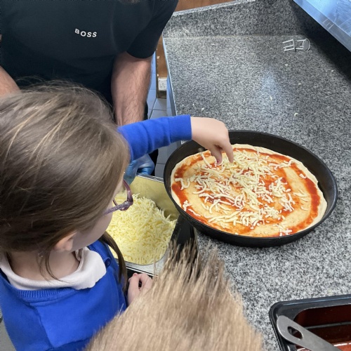 We all enjoyed our walk to our local cafe Aroma where Gem showed us how to make our own pizzas. At school we have our own role play pizza shop where we take orders, create our own pizzas and write out bills and receipts.