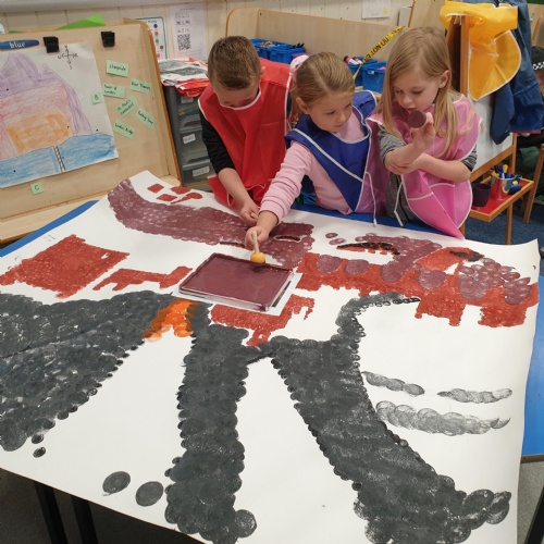 Year 2 producing their own Pointillism painting inspired by George Seurat and The Great Fire of London.