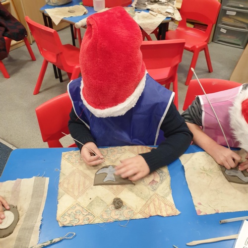 Making clay ornaments as part of the Hadrian's Wall Project